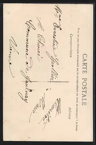 Personenbezogene Daten auf der Rückseite der Karte wurden durch blauen Textmarker unkenntlich gemacht. Die blauen Stellen sind auf die Vorderseite durchgeweicht und wirken sich negativ auf das Postkartenfoto aus
