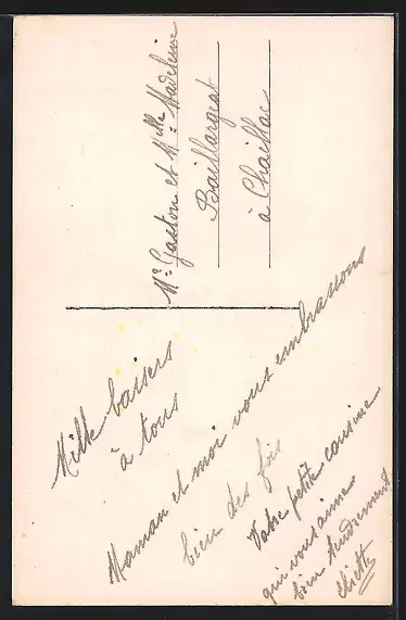 Personenbezogene Daten auf der Rückseite der Karte wurden durch blauen Textmarker unkenntlich gemacht. Die blauen Stellen sind auf die Vorderseite durchgeweicht und wirken sich negativ auf das Postkartenfoto aus