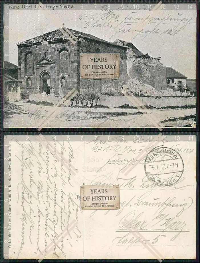 AK 1. WK 1917 Feldpost Leintrey Lothringen Meurthe et Moselle Granatfeuer zerst