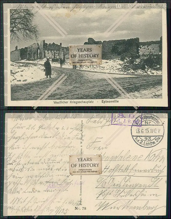 AK 1. WK Epinonville Meuse Zerschossene Häuser Kriegszerstörungen Feldpost 1915 gel. M2023-12-23-027AK 1. WK Epinonville Meuse Zerschossene Häuser Kriegszerstörungen Feldpost 1915 gel.