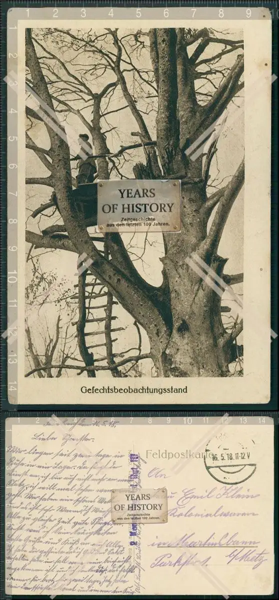 AK 1. WK Soldat auf Baum Gefechtsbeobachtungsstand 1918 Feldpost gelaufen M2023-03-30-073AK 1. WK Soldat auf Baum Gefechtsbeobachtungsstand 1918 Feldpost gelaufen