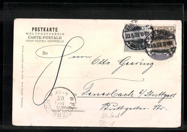 alte Ansichtskarte, gelaufen 1903, Stempelspur, guter Zustand