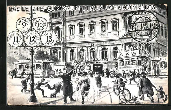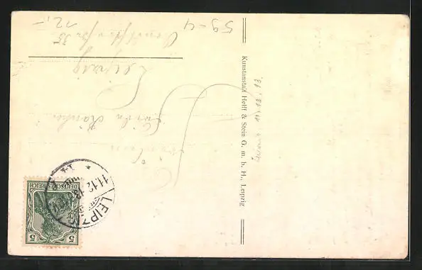 Personenbezogene Daten auf der Rückseite der Karte wurden durch blauen Textmarker unkenntlich gemacht. Die blauen Stellen sind auf die Vorderseite durchgeweicht und wirken sich negativ auf das Postkartenfoto aus
