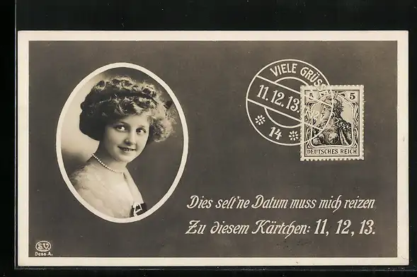 AK 11.12.1913, Junge Frau mit Perlenkette