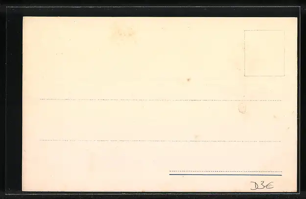 Personenbezogene Daten auf der Rückseite der Karte wurden durch blauen Textmarker unkenntlich gemacht. Die blauen Stellen sind auf die Vorderseite durchgeweicht und wirken sich negativ auf das Postkartenfoto aus