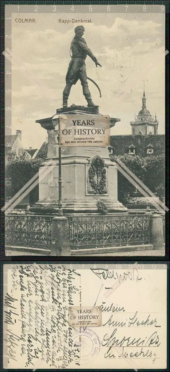AK 1.WK Colmar Kolmar Elsass Haut Rhin La Place Rapp Denkmal 1918 Feldpost gelaufen M2023-10-26-066AK 1.WK Colmar Kolmar Elsass Haut Rhin La Place Rapp Denkmal 1918 Feldpost gelaufen