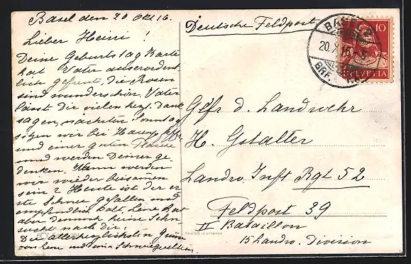 gelaufen 1916, Eckknicke re. unten, minimaler Einriss re. unten, guter Zustand