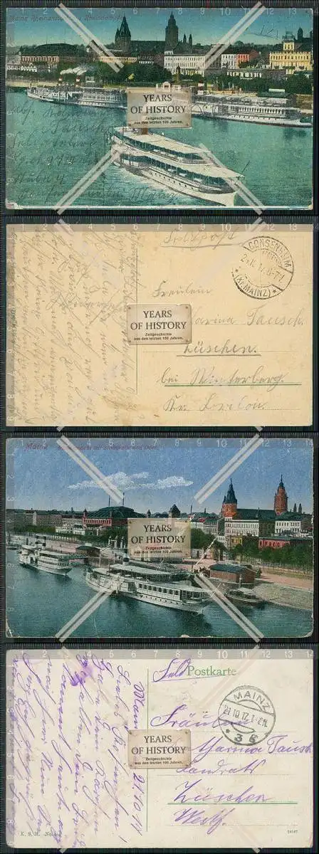 AK 2x Mainz Dampfer auf dem Rhein 1917 Feldpost gelaufen M2024-03-12-003AK 2x Mainz Dampfer auf dem Rhein 1917 Feldpost gelaufen