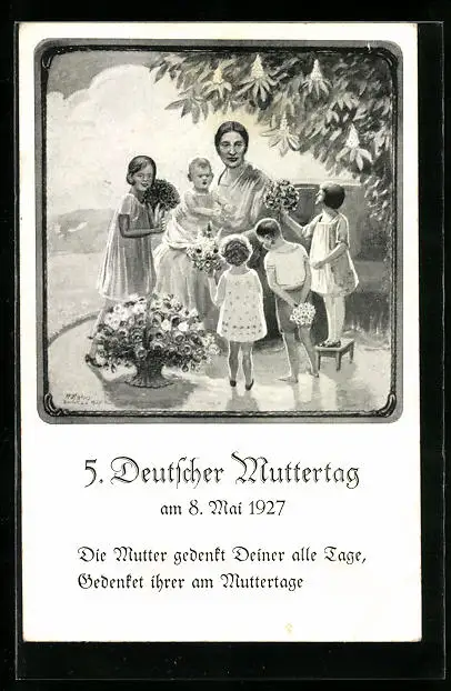 AK 5. Deutscher Muttertag 1927, Mutter mit ihren Kindern