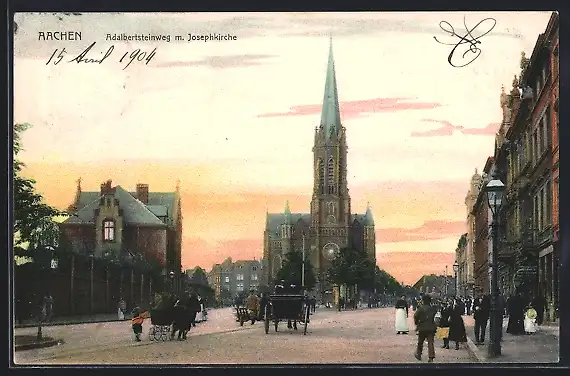 AK Aachen, Adalbertsteinweg mit Josephkirche