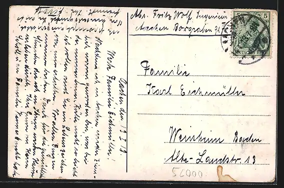 gelaufen 1913, guter Zustand