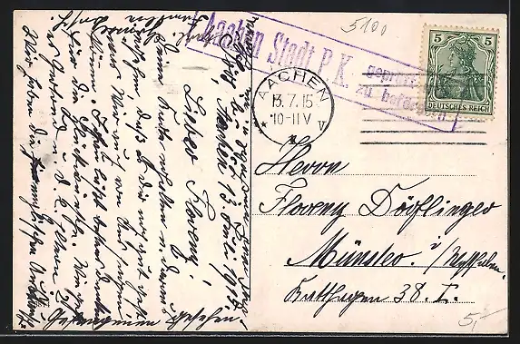 gelaufen 1915, Stempelspur, guter Zustand