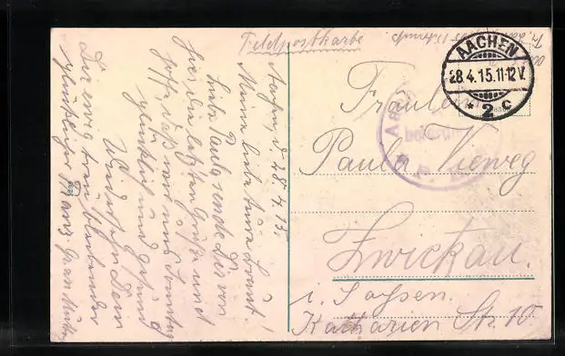 alte Ansichtskarte, gelaufen 1915 als Feldpost, guter Zustand