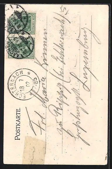 alte Ansichtskarte, gelaufen 1902, Eckknick re. unten, restaurierter Einriss re. unten, guter Zustand