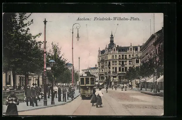 AK Aachen, Friedrich-Wilhelm-Platz mit Strassenbahn