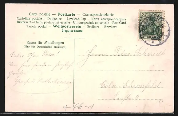 alte Ansichtskarte, gelaufen 1906, guter Zustand