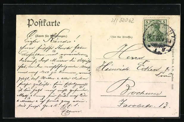 alte Ansichtskarte, gelaufen 1907, guter Zustand