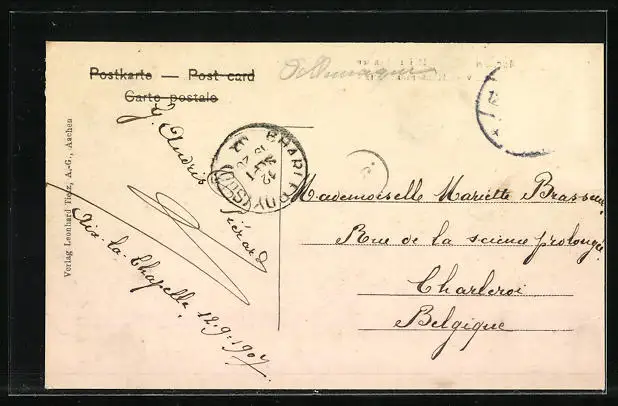 alte Ansichtskarte, gelaufen, Briefmarke entfernt, Stempelspur, guter Zustand