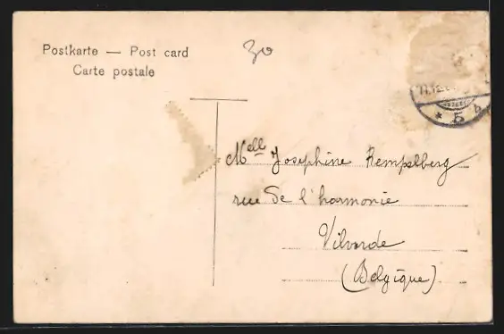 alte Ansichtskarte, gelaufen, Briefmarke entfernt, guter Zustand