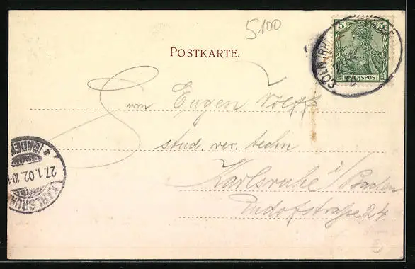 alte Ansichtskarte, gelaufen 1902, guter Zustand