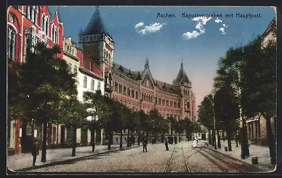 AK Aachen, Kapuzinergraben mit Hauptpost