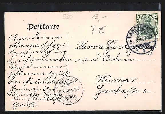 alte Ansichtskarte, gelaufen 1906, guter Zustand