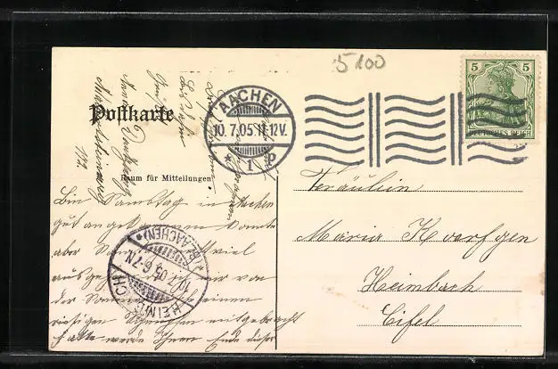 alte Ansichtskarte, gelaufen 1905, guter Zustand