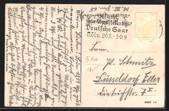 alte Ansichtskarte, gelaufen, Briefmarke entfernt, rückseitig Oberflächenschaden, guter Zustand