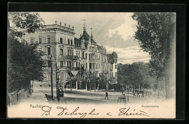 AK Aachen, Monheimsallee mit Strassenbahn