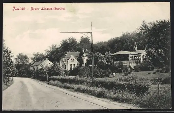 AK Aachen, Neues Linzenhäuschen mit Strasse