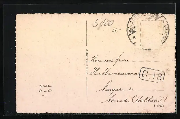 alte Ansichtskarte, gelaufen, Briefmarke entfernt, rückseitig Oberflächenschaden, Eckknick li. unten, guter Zustand