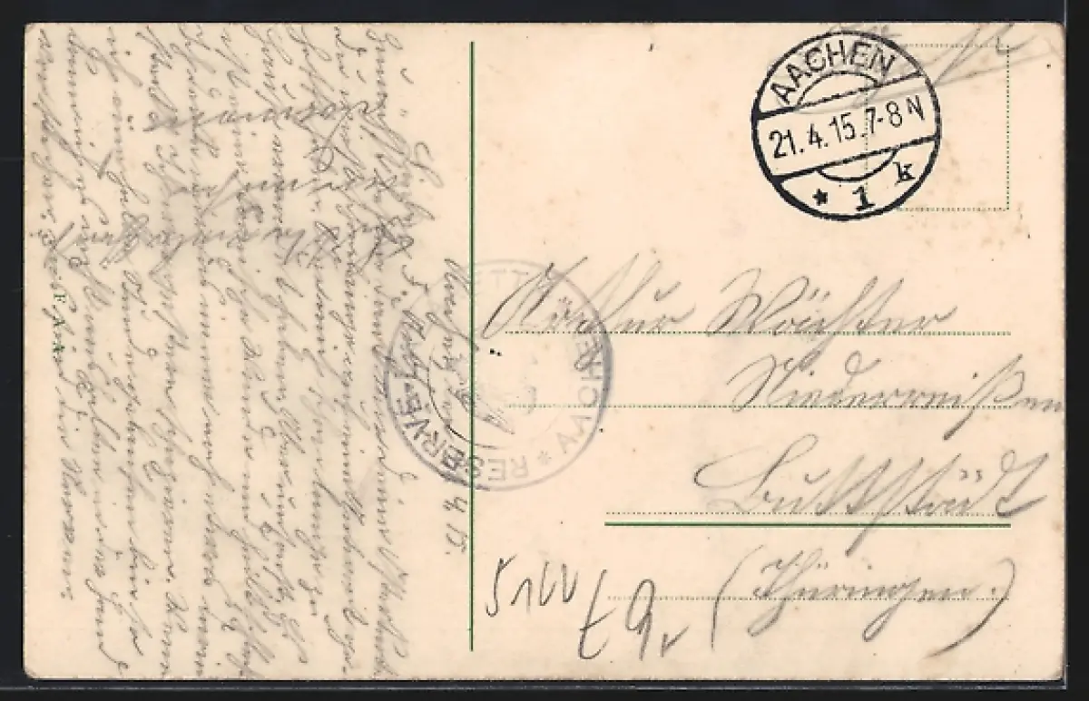 gelaufen 1915, Eckknick oben li., guter Zustand