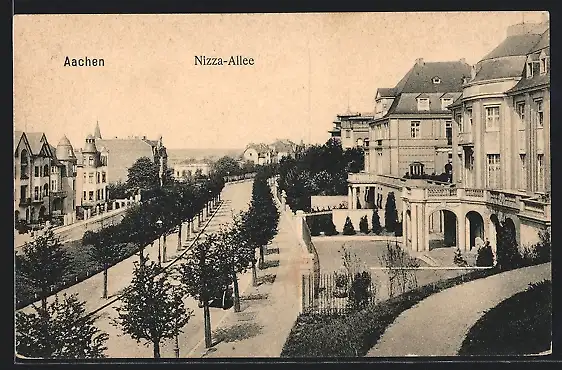 AK Aachen, Nizza-Allee mit Wiesenstück