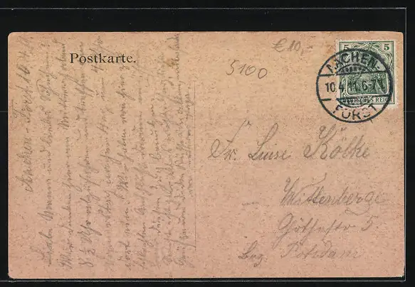 alte Ansichtskarte, gelaufen 1911, guter Zustand