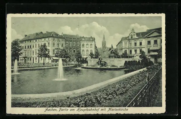 AK Aachen, Partie am Hauptbahnhof mit Marienkirche