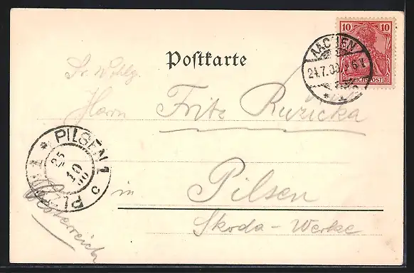 alte Ansichtskarte, gelaufen 1900, guter Zustand