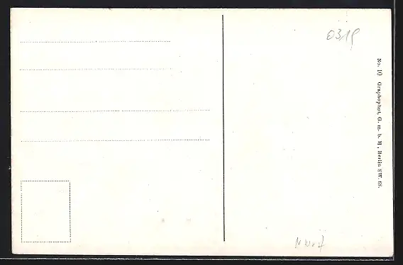 Personenbezogene Daten auf der Rückseite der Karte wurden durch blauen Textmarker unkenntlich gemacht. Die blauen Stellen sind auf die Vorderseite durchgeweicht und wirken sich negativ auf das Postkartenfoto aus