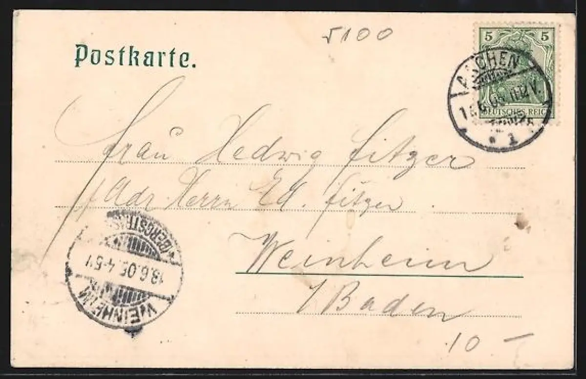 alte Ansichtskarte, gelaufen 1905, guter Zustand