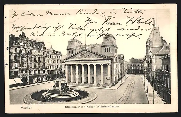 AK Aachen, Stadttheater mit Kaiser-Wilhelm-Denkmal