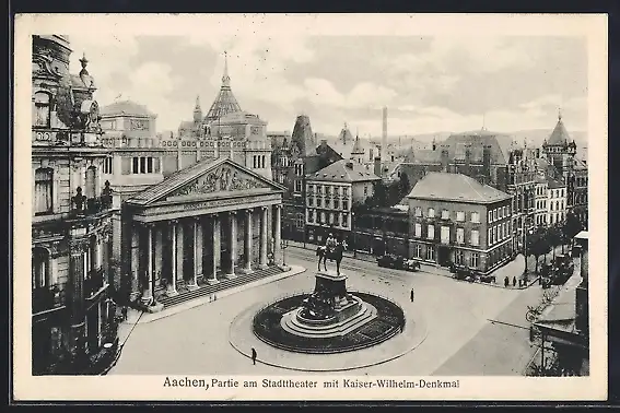 AK Aachen, Stadttheater mit Kaiser-Wilhelm-Denkmal