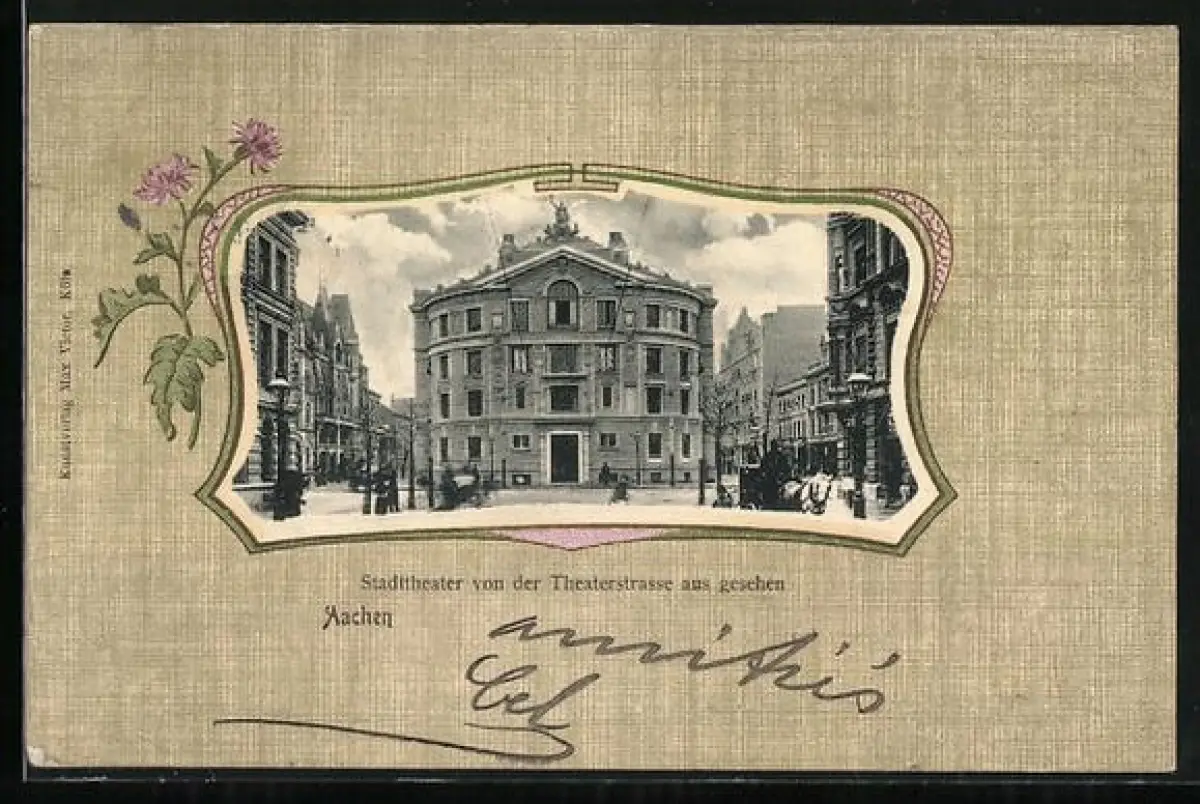 AK Aachen, Stadttheater von der Theaterstrasse aus gesehen