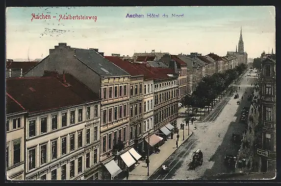 AK Aachen, Strasse Adalbertsteinweg mit Kirche aus der Vogelschau