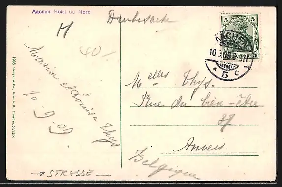 alte Ansichtskarte, gelaufen 1909, Stempelspur, guter Zustand