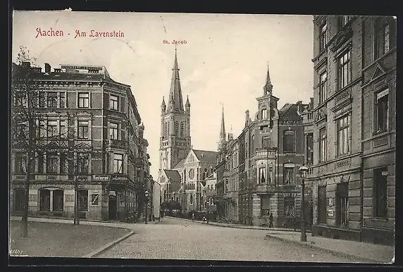 AK Aachen, Strasse am Lavenstein mit St. Jacob