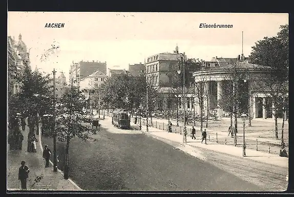 AK Aachen, Strassenbahn am Elisenbrunnen