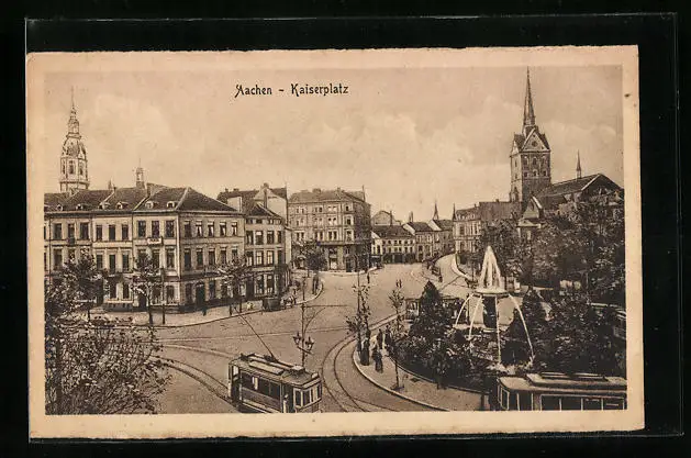 AK Aachen, Strassenbahnen am Kaiserplatz