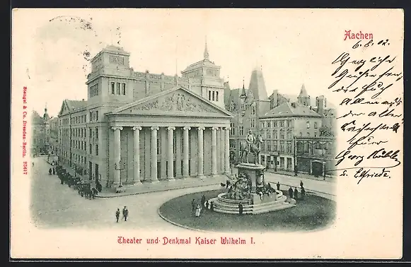AK Aachen, Theater und Denkmal Kaiser Wilhelm I.