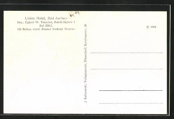 AK Aachen, Union Hotel, Innenansicht, Bahnhofsplatz 1