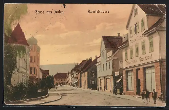 AK Aalen, Partie in der Bahnhofstrasse, mit Geschäftshäusern