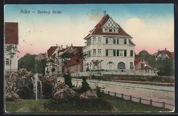 AK Aalen, Rombacher Strasse mit Springbrunnen